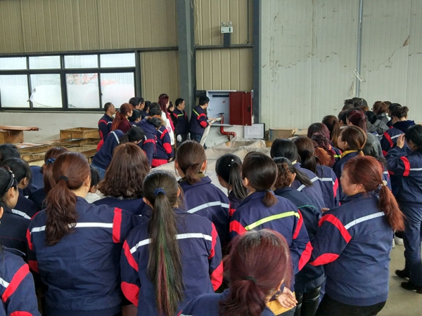 下午2點,公司消防演習準時開始,各部門參與消防演習的員工從車間逃生,快速有效的到達緊急集合點,車間員工則按照各車間負責人指示從安全通道及時有序撤離,及時到達緊急集合處。